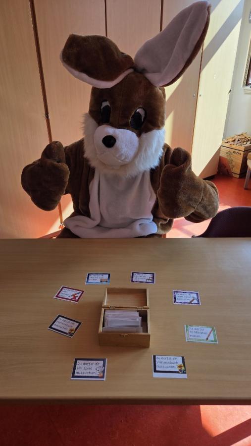 Heute suchten unserer Klassen im Schulgarten nach Ostereiern. Es gab auch besondere, goldene Eier. Wer das Glück hatte, ein goldenes Ei zu finden, konnte es im Osterhasenbüro gegen einen Gutschein einlösen.